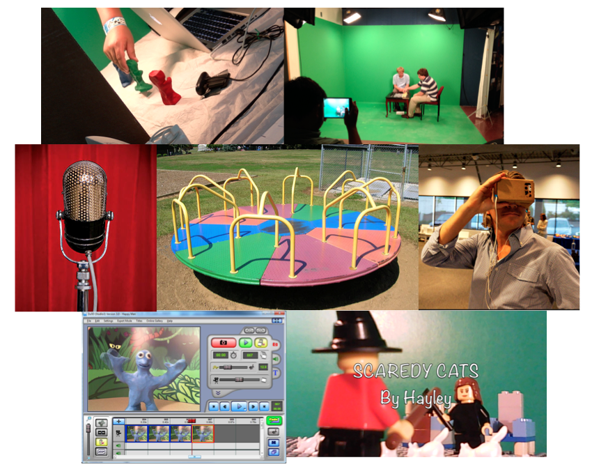 Our digital playground gives kids the chance to try out several fun forms of digital media activities such as stop-motion animation, Google Cardboard 3D VR, green screen video tricks, LEGO animation, etc.